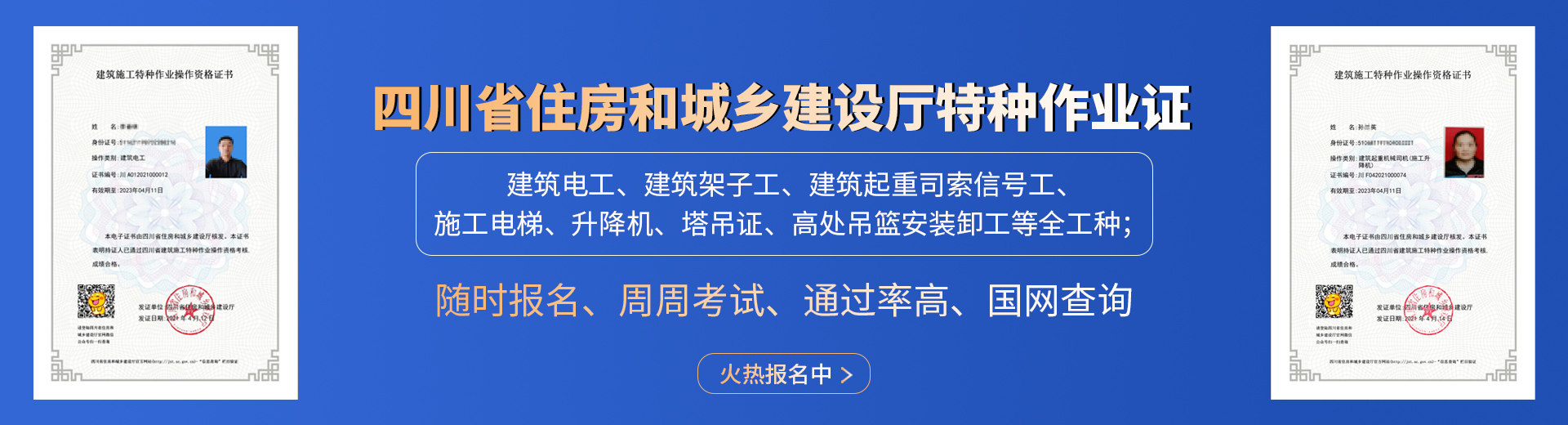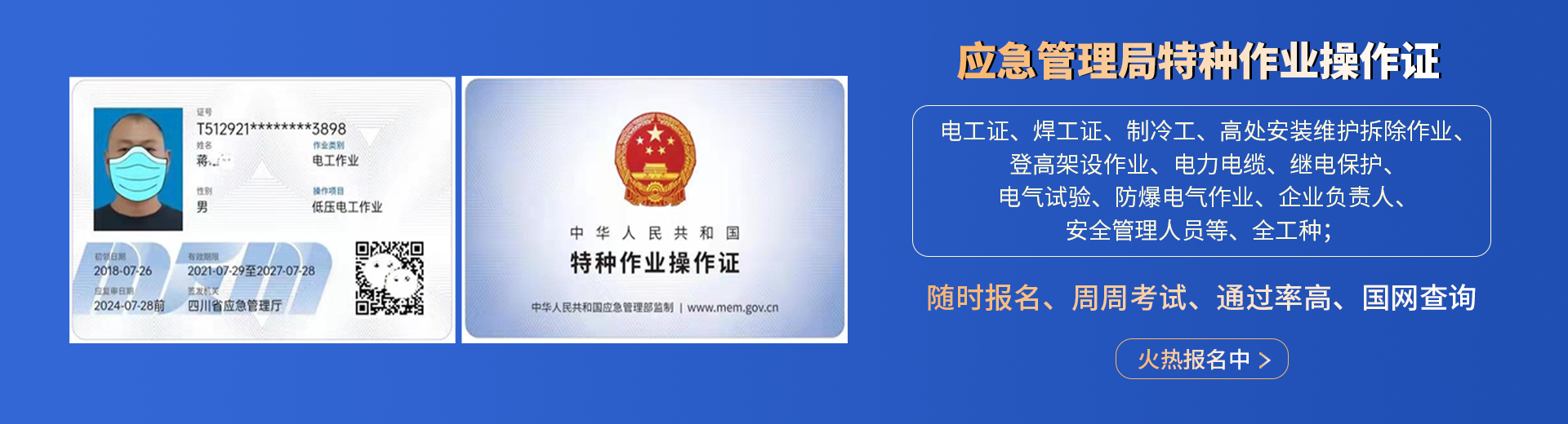 電工證,焊工證,登高架設(shè)證,高處安裝維護(hù)拆除證,電力電纜證,繼電保護(hù)證,電氣實(shí)驗證,防爆電器作業(yè)證,制冷工證,主要負(fù)責(zé)人證,安全管理人員證